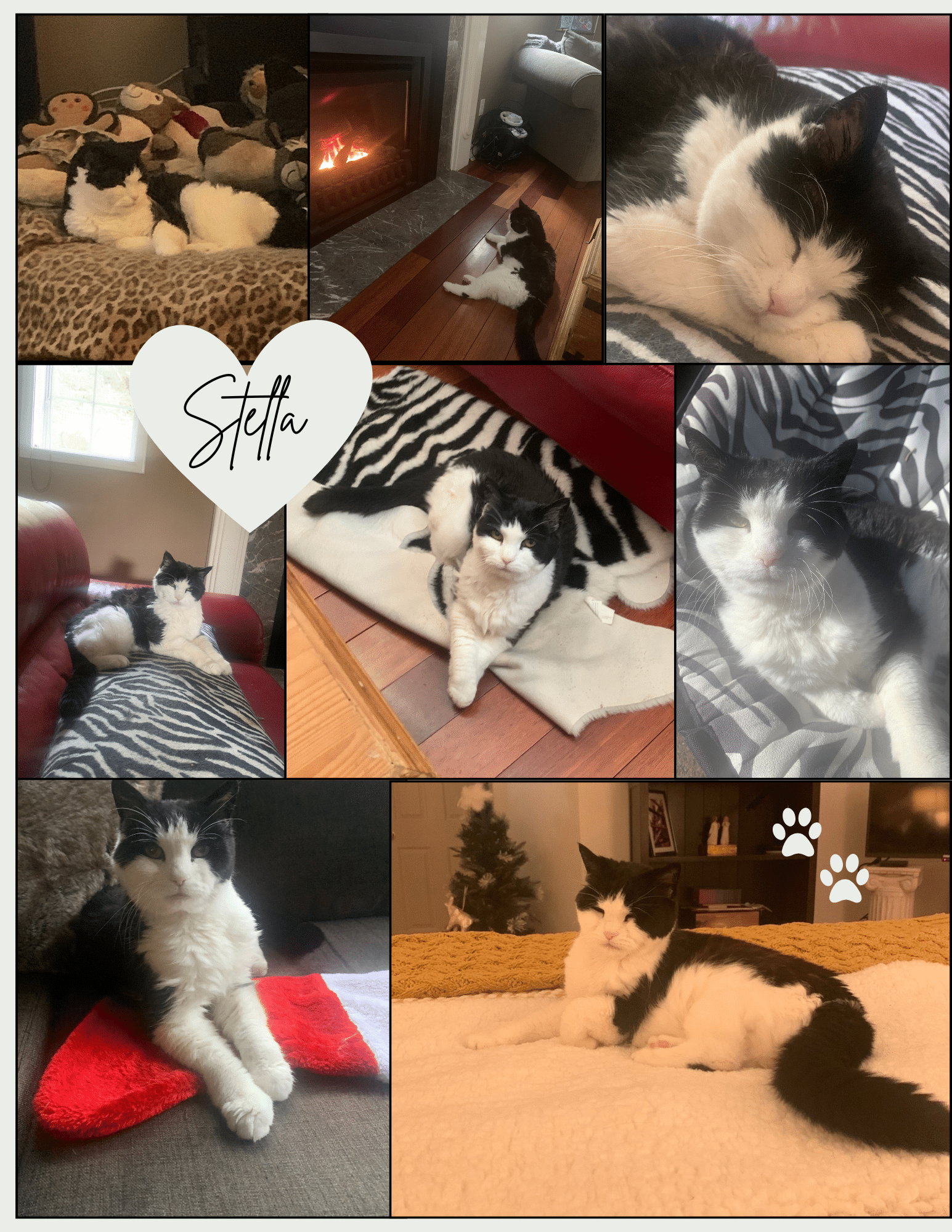 Stella was always there… our constant. So patient, wise and so loving. In the background, always there. I wanted to say. She wasn’t a lap cat. Ever…. Except when our dog Ryder passed. Stella laid on our Laps, for me and Ty, helping us grieve. Never offered again but truly helped us with our loss, our sweet baby girl. She did this for quite a few days. Bless her. We gave her all the one on one love and time we could. She made it to 20.
